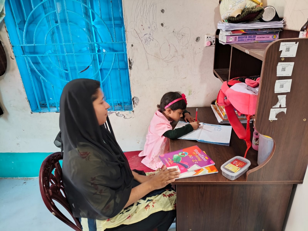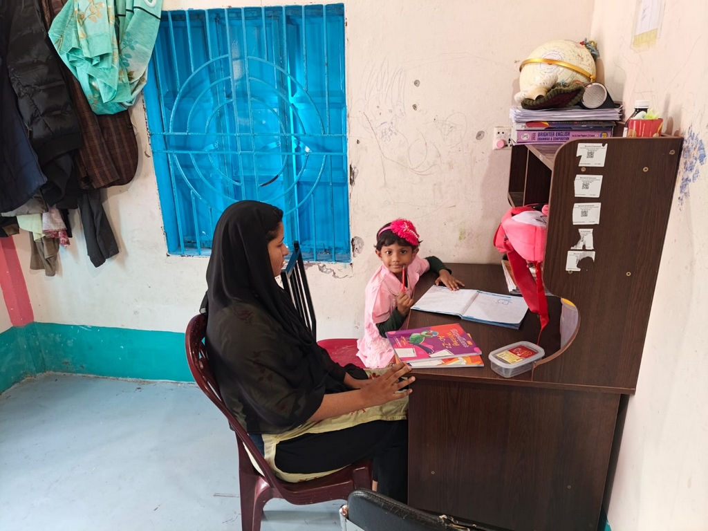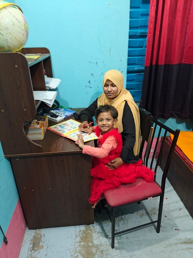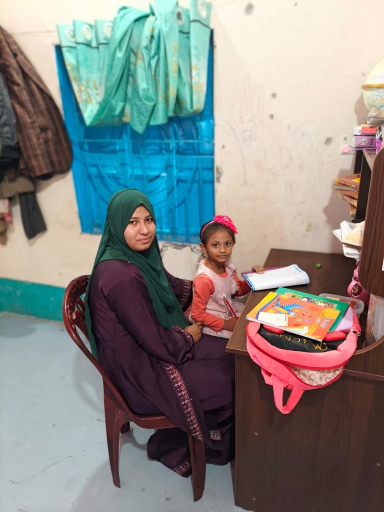 Aysha et sa maîtresse Lima lors de la seconde leçon particulière, le 3 février. (Photo : Rubel)