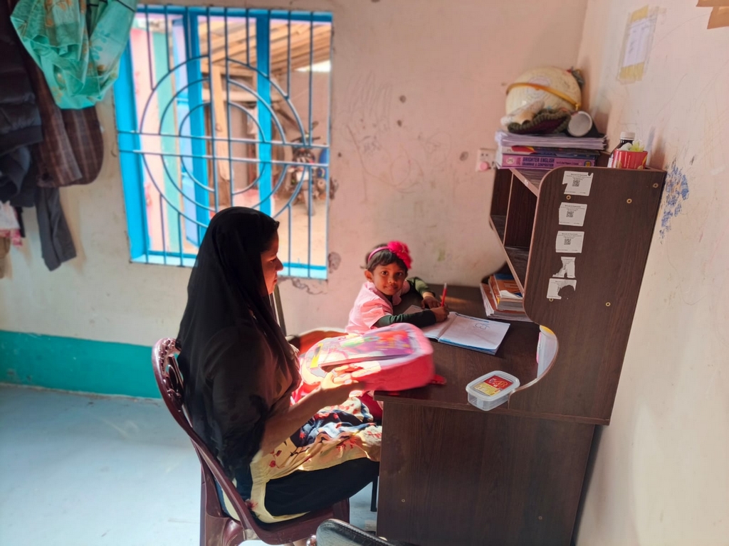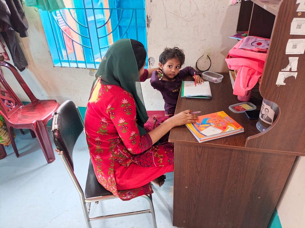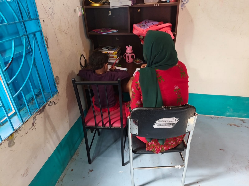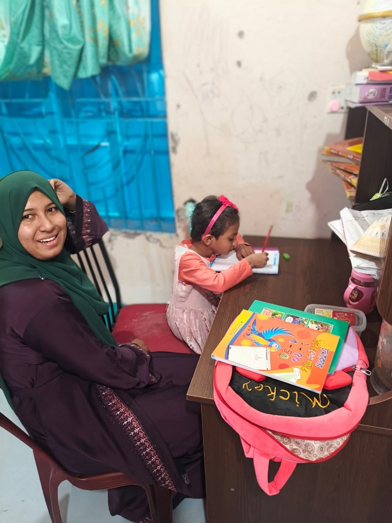 Aysha et sa maîtresse Lima lors de la seconde leçon particulière, le 3 février. (Photo : Rubel)